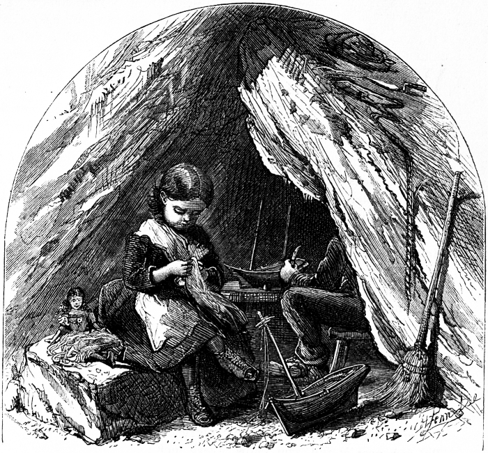 I doubt if the old grandmother herself would not have been puzzled by her wild actions, for the little one was usually very gentle and quiet. “Sweetheart, what have you about your neck?” the old mother would say. Then Ivy would blush a guilty red, and put her hands to her throat; but the grandmother, with good-natured roughness pulling them away, would bring to light a string of delicately tinted sea-shells. “What’s to be ashamed of in that, little one?” she would laugh; “but to my mind the blue beads the Indian woman brought are a deal prettier.” Little Ivy would say nothing—but think. Why, she prized each rosy shell as would a lover the violets fragrant from his sweetheart’s hand!