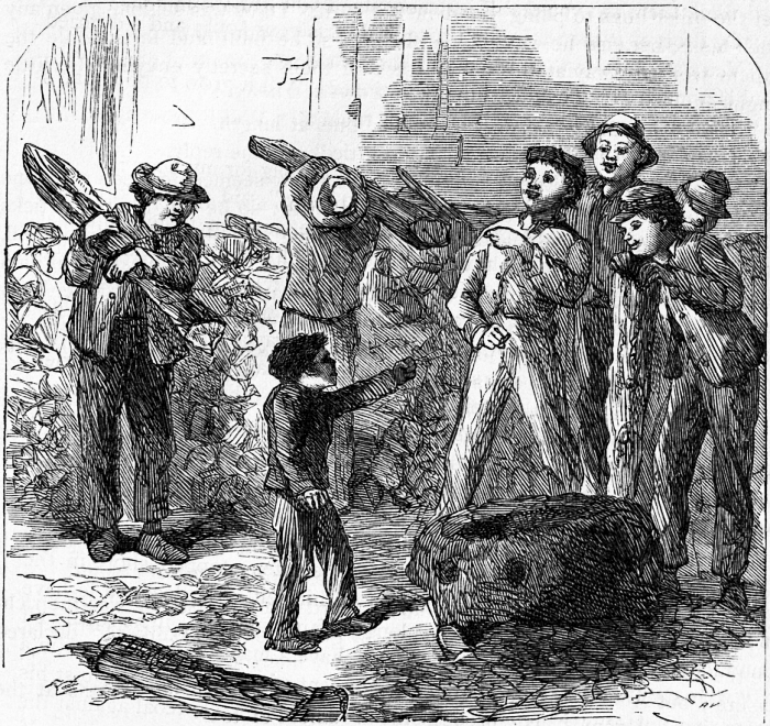 “There is one thought that somewhat consoles me when I think of our keeping slaves, and it is this,—my father never whipped a negro. If they behaved badly, he punished them in some other way. One bright little girl we brought with us; her name is Tilly. We read her the story ‘How June found Massa Linkum’ in the May number, and there were tears in her great black eyes when we finished. Some people think negroes have no feelings. They would know better, if they could see Tilly.