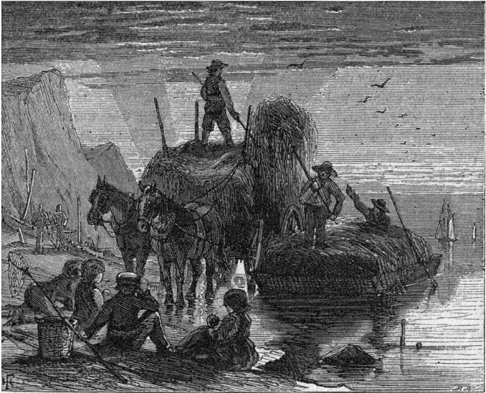 “So it is at low water,” said grandpa. “These creeks which run up through the meadows are narrow,—not more than fifteen or twenty feet at the widest, and as deep often as they are wide. There’s little motion in them, for they stay just about so full, whether the tide’s up or not; and, seeing the sand bar before them, you wouldn’t think there was anything there. This bar before Ward’s Creek is the worst one ’long shore; for, since I can remember, two men have been sucked into the quicksand, and that was the end of them.”