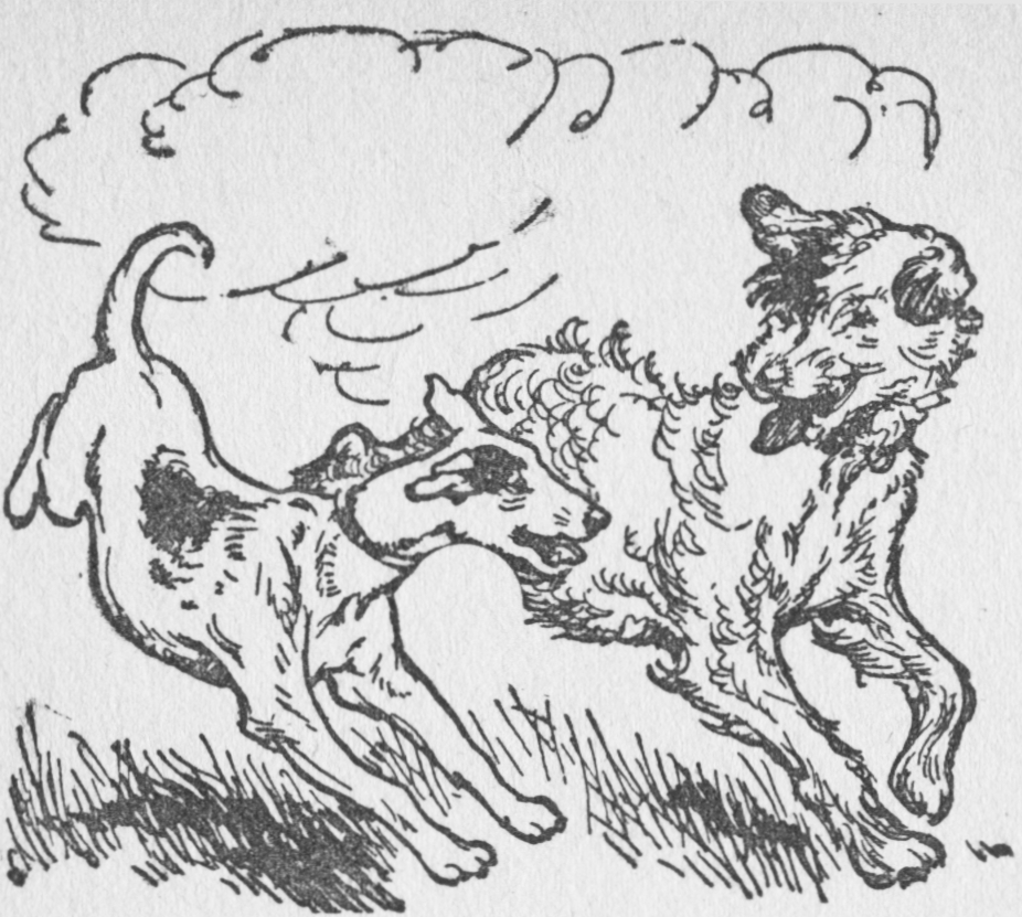 “Gr-rr-rr-rr!” said Bouncer happily. Dick left Larry and Bouncer, knowing quite well that his dog would not let the boy escape. Down the hill he tore with the dogs, wondering if he would be in time for the show.
