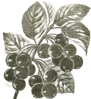 The blueberry is one of the most valuable fruits grown, and in extreme northern latitudes, where most other fruits winter kill, is perfectly hardy and a regular bearer; yields a full crop in seasons when all other fruits fail. The fruit ripens in this latitude about the 1st of July, and is borne in clusters, like the currant. The fruit is about the size of the wild gooseberry; shape, round; color, a bluish-black. When fully ripe, the flavour is equal to the raspberry, a very mild, rich sub-acid, considered by most people delicious. Single bushes will often yield ten and twelve quarts in a season. The plant is about the height and size of the currant bush, and very stocky, holding the fruit well up from the ground. It commences bearing the first year after setting out, and furnishes a full crop the second and third years. Spring, during April and May, is the best time for transplanting. The plants are propagated from root-cuttings, the same as blackberries, but unlike the latter, the canes will continue to bear five or six years. The berries are very firm, being successfully shipped hundreds of miles. The demand for the fruit is great, and it brings on an average fifteen cents per quart wholesale.