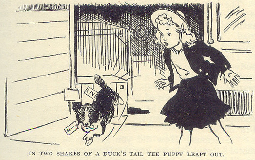 IN TWO SHAKES OF A DUCK’S TAIL THE PUPPY LEAPT OUT.