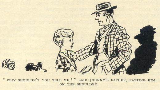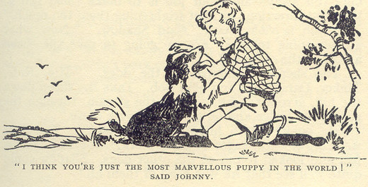 “Dad! Can’t I keep him!” cried Johnny, picking up the trembling puppy. “I do love him so, and he’s such friends with me. He’ll always come back, no matter how often we send him away. I’m sure he will.”