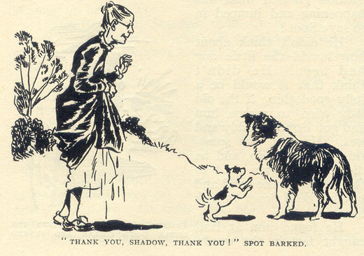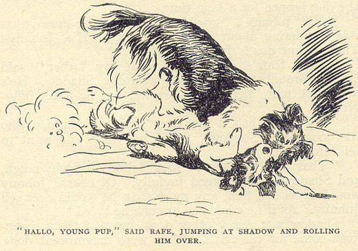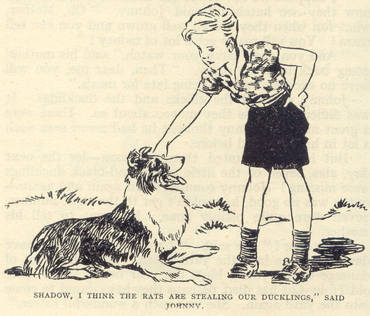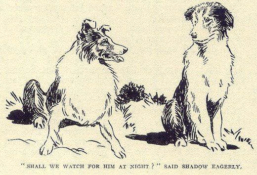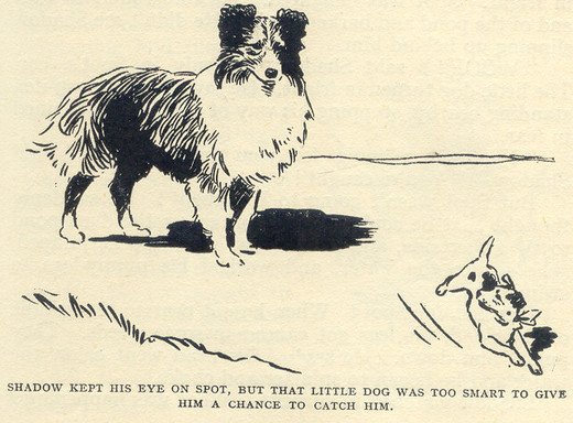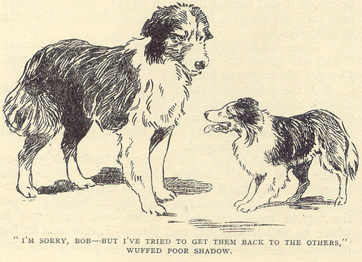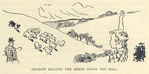 So Shadow had to go with Dandy. He always obeyed the older dogs, for he knew they had taught him everything and he owed them a great deal. So he got up and followed Dandy when Johnny shouted to the older dog that he wanted the sheep fetched in closer.