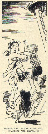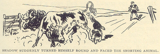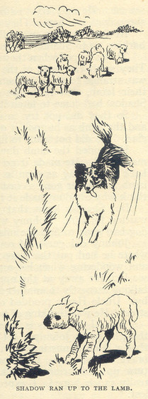 That made Shadow quite determined to be patient with the sheep, for he did not want anyone to think that Johnny was anything but good and patient too. So although the silly lamb made him feel very angry, the dog did not show it once, and very soon the little creature sensed that the strong, quiet animal behind it, nosing it upwards, was its friend, and not its enemy. Then it went more willingly and did not stop so often.
