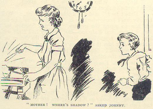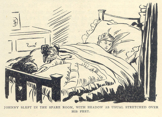 “Mother! The pup’s back again—and I’m to keep him for my own!” cried Johnny. “Do you know what I’m going to call him? I shall call him Shadow—for he follows me about just like my shadow does. Oh, I’m so happy with a dog of my own. Shadow! Shadow! How do you like your name?”