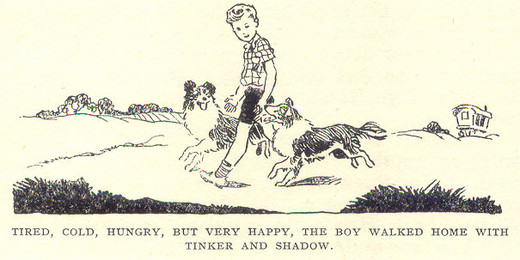 Both dogs wagged their tails. They always enjoyed their work, and would have done it even without orders from Johnny or the shepherd—but it was nice to have a word of praise. Johnny’s father had told him that all creatures like a word of praise when they had done well, and should get it.