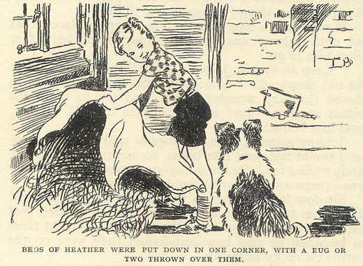 BEDS OF HEATHER WERE PUT DOWN IN ONE CORNER, WITH A RUG OR TWO THROWN OVER THEM.