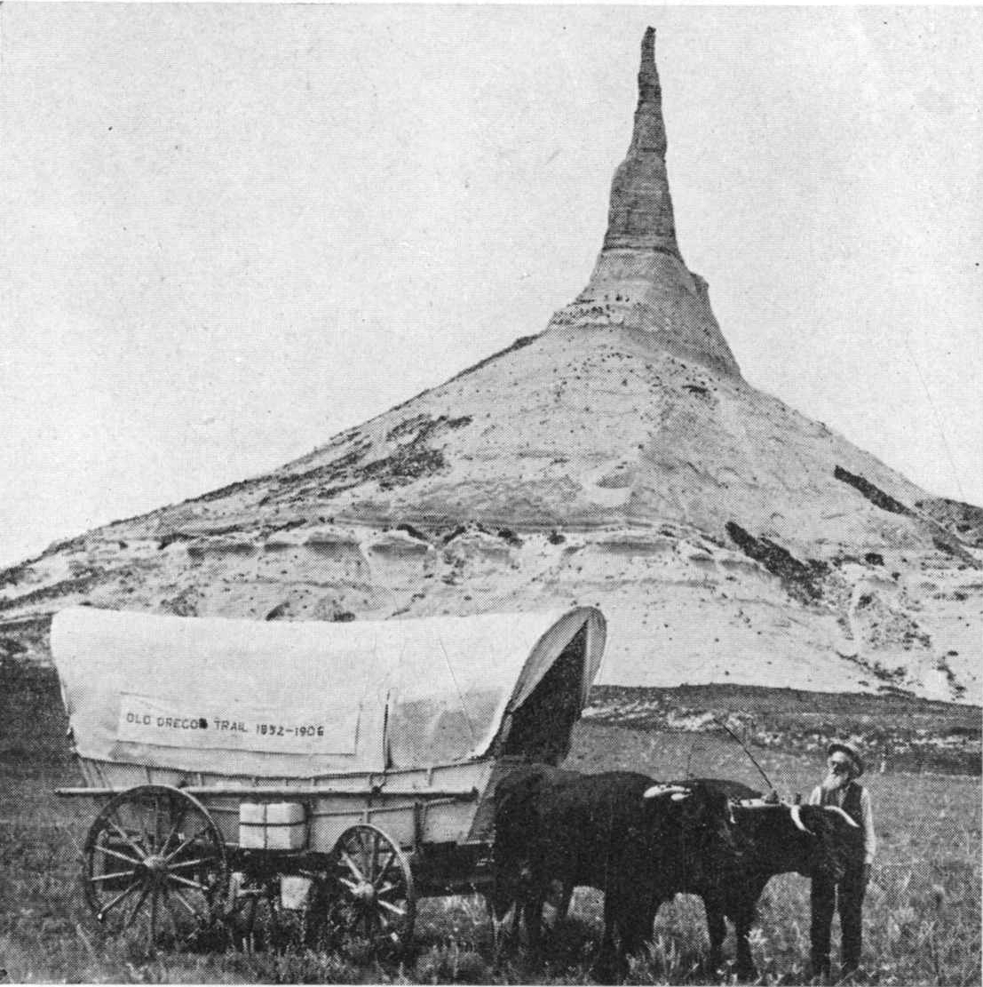 EZRA MEEKER RETRACING THE OREGON TRAIL IN 1910, AND CHIMNEY ROCK, THE FAMOUS LANDMARK OF THE PIONEERS