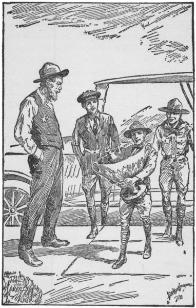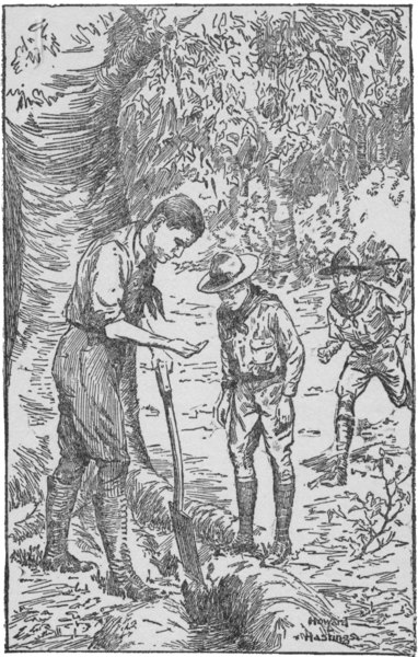 “The gold dust will be pretty well mixed up with the earth right plunk under the tree. It’ll be pretty hard to get at. But there are plenty of us to do the work and we’re all scouts—except me. We’re not afraid of work. We’ve got a wireless outfit to get, and a bicycle painted green. Are you all game for a hard day’s work to-morrow?”