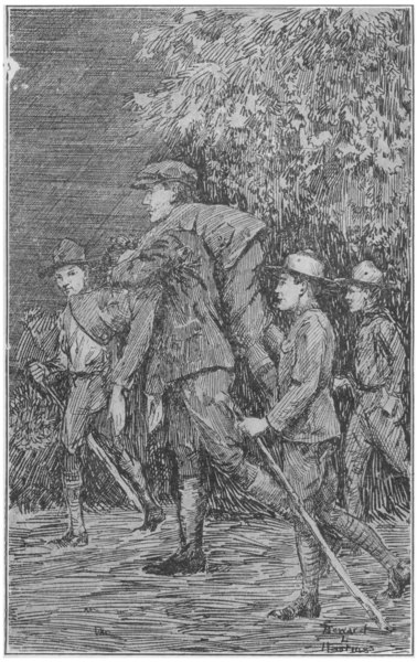 “Well,” Harry said, “all I know is, that we formed this party to come up here after buried treasure, and that we came equipped with rolling-pins and saucepans and pickaxes, and now it seems we’re talking about trees. You’re a queer lot, you scouts.”