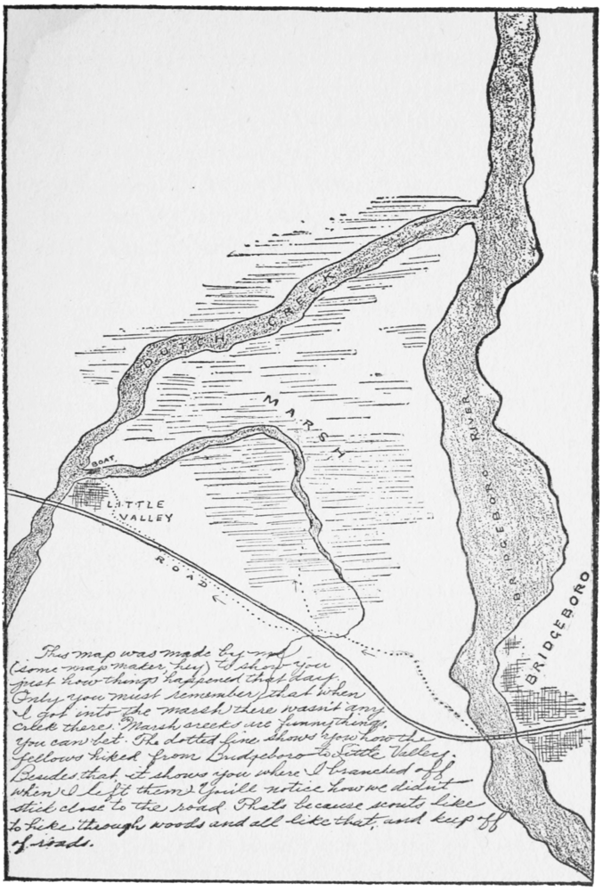 Well, I guess that’s all there is to tell you about the meeting, and in the next chapter I’m going to tell you all about how we collected the books for the fellows in camp, and how the mystery about the boat was solved. Those are Pee-wee’s words about the mystery of the boat. I can’t see that there was any mystery about it, but there was another kind of a mystery, believe me, and that kid was the cause of it. I guess maybe you’ll like the next chapter better than this one.
