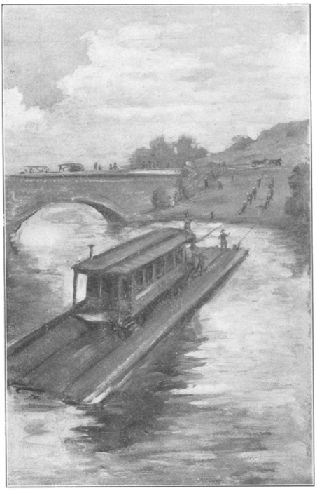 Sure enough, they were there waiting for us when we came flopping along. And a lot of other people were there, too. Gee whiz, everybody had heard about us by that time. We floated right up against the bridge—bump. And then some men threw us a rope and we fastened it to the old barge and they pulled us ashore. Everybody stared at us like the natives stared at Columbus Ohio when he landed on San Salvador.