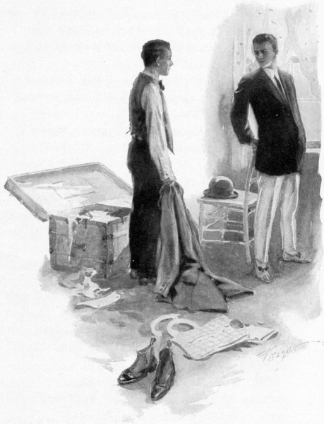 “Yes, but he told me he had some long trousers in his trunk. Says he didn’t know which was proper here. He’s a funny little kid.”