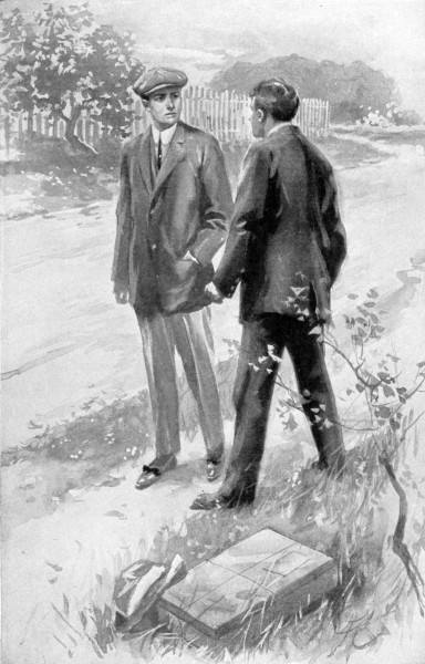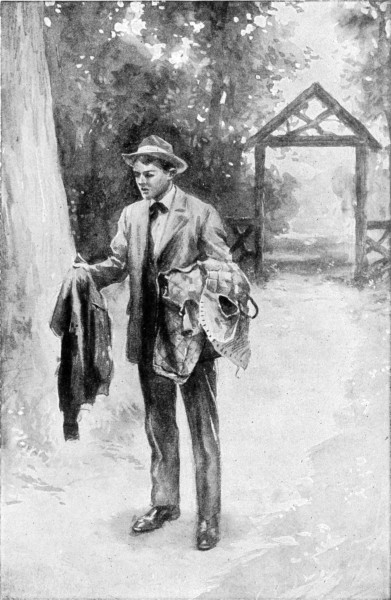 But of course he didn’t. If he had his name wouldn’t have been John William Boland.[9] Moreover, there wouldn’t have been any story! No, he kept right along the hot road which presently bore to the left and became gradually shady with spreading elms. The shabby dwellings died away from either side and open lots and then broad fields succeeded them. Once he rested for a good five minutes perched on a stone wall in the grateful shade of a big elm, and while he sat there, hat off, rumpled hair exposed to a little listless breeze, shiny bag at his feet, two carriages filled to the brim with boys, arrivals on a later train, rattled merrily and noisily by him, and he was uncomfortably conscious of the curious looks and the muttered comments proceeding from them.