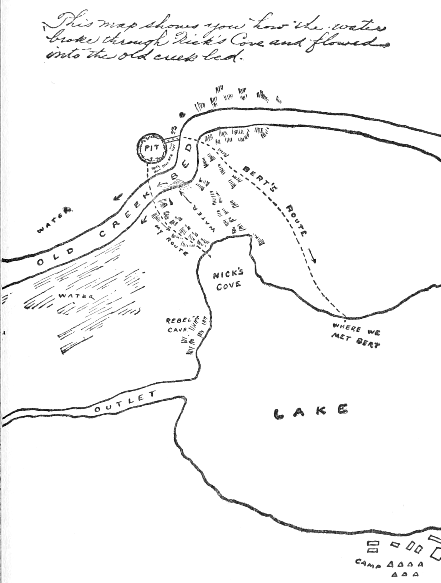 Before Saturday came, Mr. Ellsworth made a bargain with Sandy Grober to tow us down into the Kill Von Kull—that’s near Staten Island, you know. Sandy has a boat with a heavy duty motor in it, and he said he’d do the job for ten dollars, because, anyway, he’d go to Princess Bay fishing. Our troop was broke and we couldn’t spare the money, because we needed all we had for eats and things. So this is the way we fixed it.