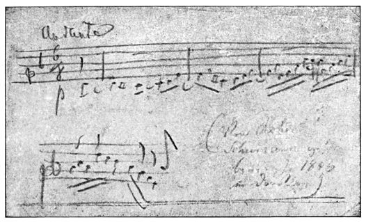 Bleistiftskizze aus Robert Schumanns Notizbuch (Dresden 1846).