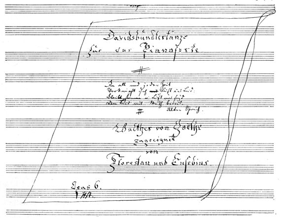 Schumanns poetisch-musikalische Doppelnatur erkannte sofort, dass die Musik seiner Zeit vor ganz ähnlichen Problemen stand, wie die Literatur. Auch hier galt es zunächst, die Goldkörner aus einem Schutthaufen seichter Unterhaltungskunst ans Licht zu ziehen. Was Schumann nach dieser Richtung für Bach und besonders für Beethoven, Schubert und Chopin getan hat, ist bekannt. Aber seine Mahnworte erstreckten sich nicht allein auf die Kunst selbst, sondern auf die gesamte deutsche Musikpflege. Er kennt und bekämpft die Schäden, die dem Musikerstande seiner Zeit anhafteten: er zwingt die Musiker in seinen Kritiken, über die Grundlagen ihrer Kunst nachzudenken, er eifert gegen die mehr und mehr einreissende Vernachlässigung ihrer Allgemeinbildung, er empfiehlt ihren Zusammenschluss zu einem Allgemeinen Musikerverein — alles Ideen, die dann bei seinen neudeutschen Nachfolgern wieder auftauchen.