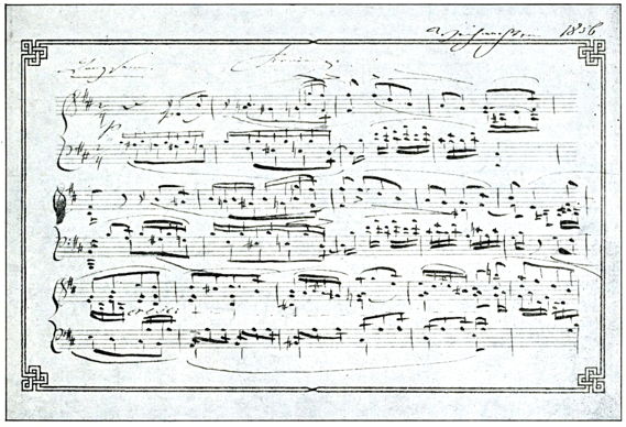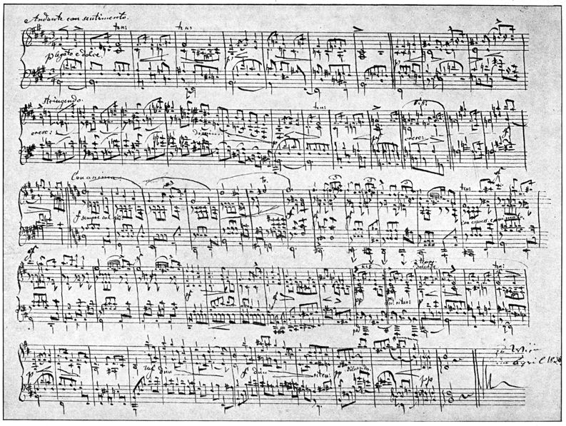 Verkleinerung des Original-Manuskriptes, im Besitze der Gesellschaft der Musikfreunde in Wien.
