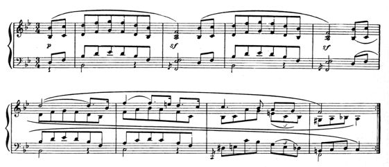 Und trotzdem hatte diese im Vergleich zur vorhergehenden armselige Periode ihre bleibenden Verdienste. In den Werken der bedeutenderen unter den Ornamentikern bahnte sich allmählich eine Vergeistigung der ganzen Richtung an, die die Kunst Chopins vorbereitete; zugleich äusserte sich der romantische Geist bereits sehr deutlich, wenn auch zunächst oft nur in äusserlicher Weise, in der Vorliebe für das Volkslied aller Nationen, in dem Eindringen poetisierender Tendenzen in die Komposition und namentlich in jener echt romantischen Ton- und Klangsymbolik, die, von Meistern wie Cherubini und Weber zuerst auf den Schild erhoben, dem musikalischen Ausdruck vollständig neue Perspektiven eröffnete.