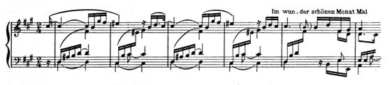 Dass Schumanns Klaviermusik in breitem Umfang programmatische Tendenzen erkennen lässt, ist bekannt; dass er damit keineswegs etwas prinzipiell Neues schuf, wird noch zu zeigen sein. Bei der nahen Wesensverwandtschaft dieser Gattung mit der Vokalmusik war darum auch sein 1840 erfolgter Uebertritt in das Gebiet des Liedes nicht so überraschend, als es ihm selbst scheinen mochte. Vom historischen Standpunkte aus war dieser Schritt dafür um so folgenschwerer. Denn Schumann hat damit nicht allein eine neue Hochblüte des Liedes heraufgeführt und so dieser nationalen Gattung aufs Neue eine dominierende Stellung in unserer Kunst erobert, sondern er hat zugleich die alte Hegemonie Sachsens auf diesem Gebiete wiederhergestellt, die ihm geraume Zeit von den Berlinern entrissen gewesen war. Und zwar gelang ihm dies weniger durch die Universalität seiner Empfindungswelt, in der ihm Schubert weit überlegen ist, sondern durch die für seine Zeit durchaus neue und geniale Kombination von Stimme und Instrument zu vordem ungeahnten Gesamtwirkungen: hierin stehen alle Liederkomponisten bis auf den heutigen Tag auf seinen Schultern.