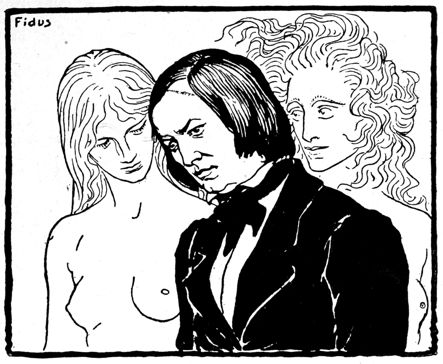 Dichtkunst und Musik waren die beiden Pole, zwischen denen sich die gesamte Jugendentwicklung Schumanns vollzog, und geraume Zeit schien es, als sollte die Poesie den Sieg über ihre Schwester davontragen. Während die Ausbildung des musikalischen Talents, wie wir sehen werden, von den Eltern keine nachhaltige Förderung erfuhr, kam insbesondere der Vater, der in den dichterischen Neigungen seines Sohnes mit Freuden sein eigenes Fleisch und Blut wiedererkannte, diesen mit aller Bereitwilligkeit entgegen. Sorgsam überwachte er die Lektüre des Knaben, erschloss ihm die Schätze seiner Buchhandlung und zog ihn schliesslich sogar zum Mitarbeiter an seinen eigenen literarischen Unternehmungen heran. Die Vorliebe für Scott und Byron z. B. mag schon damals vom Vater auf den Sohn übergegangen sein.