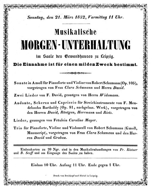 | op. 88. | Phantasiestücke für Pianoforte, Violine und Violoncell. Leipzig, Kistner. 1842. | ||