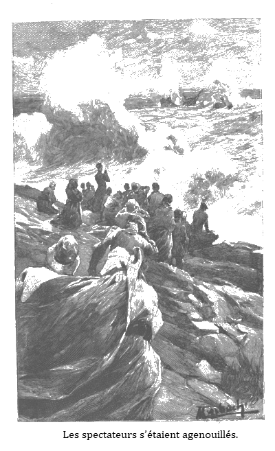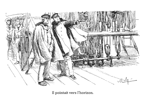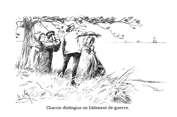 Quoique la brise se fût élevée, le temps restait beau. Au large on apercevait les îles anglaises d’Aurigny et de Sark. Jersey se dressait en dernier plan. Quelques nuages flottants promenaient leurs ombres sur un point de la mer ou de la côte.