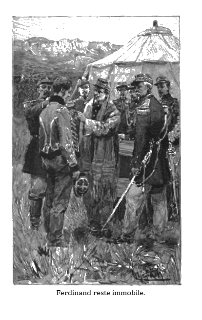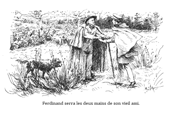 Ferdinand riait aussi, lorsque Pied-Blanc s’arrêta brusquement. A quelques pas d’eux, les voyageurs aperçurent un homme revêtu de la limousine des bergers et qui disait en soulevant un grand chapeau noir: