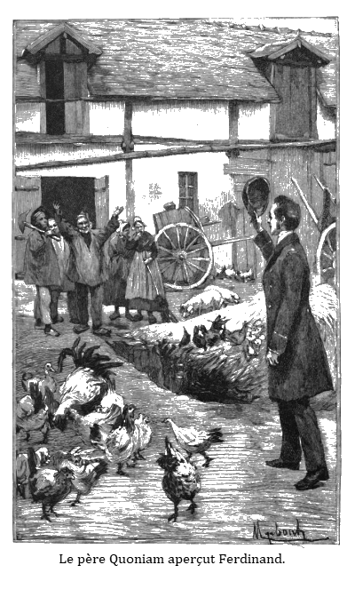 —Véritablement, mille... Non, s’écria Le Toullec, non les pareils n’existent pas sur la terre. Ferdinand et la petite fée sont uniques dans leur genre. Que le bon Dieu daigne les bénir, mille millions de... de...,» ajouta le brave homme dont un sanglot coupa la parole.