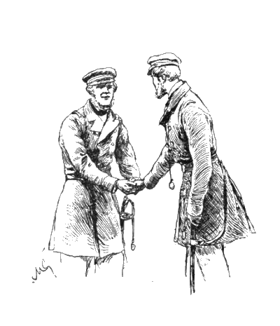 Pied-Blanc hennit de nouveau, et, en signe d’assentiment, il donna avec sa tête un coup sur celle de son conducteur.