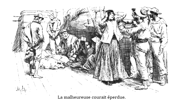 Mariée depuis dix ans, Mme de Résort n’avait encore jamais quitté son mari pour plus de quelques mois, et ce jour-là était le dernier que tous deux passaient ensemble à terre. La pauvre femme sentait son courage faiblir, et, quoiqu’elle se fût promis d’être forte, ses larmes coulaient malgré elle.
