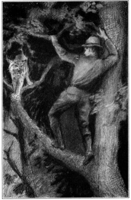 It was a terrible climb, especially with one arm embarrassed by the pail; in places he had to lift himself from one rock or projecting tree to another, like a monkey. He might have made an easier ascent to a lower eminence, but every inch of altitude he could gain was needed now. From the hilltop he saw, to his comparative relief, that the flames had not spread over a very large area. It might be that the country beyond the narrow valley was not in great danger. The fire, so it seemed to Tom, had its beginning in the widening mouth of the big gulch and was being carried in by the rising wind.