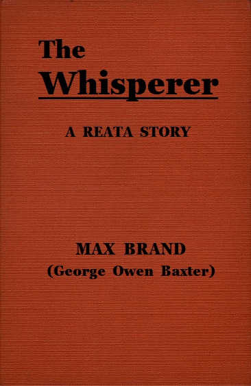 “The Whisperer: A Reata Story” first appeared under the title “Reata’s Danger Trail” by George Owen Baxter in Street & Smith’s Western Story Magazine (11/25/33).