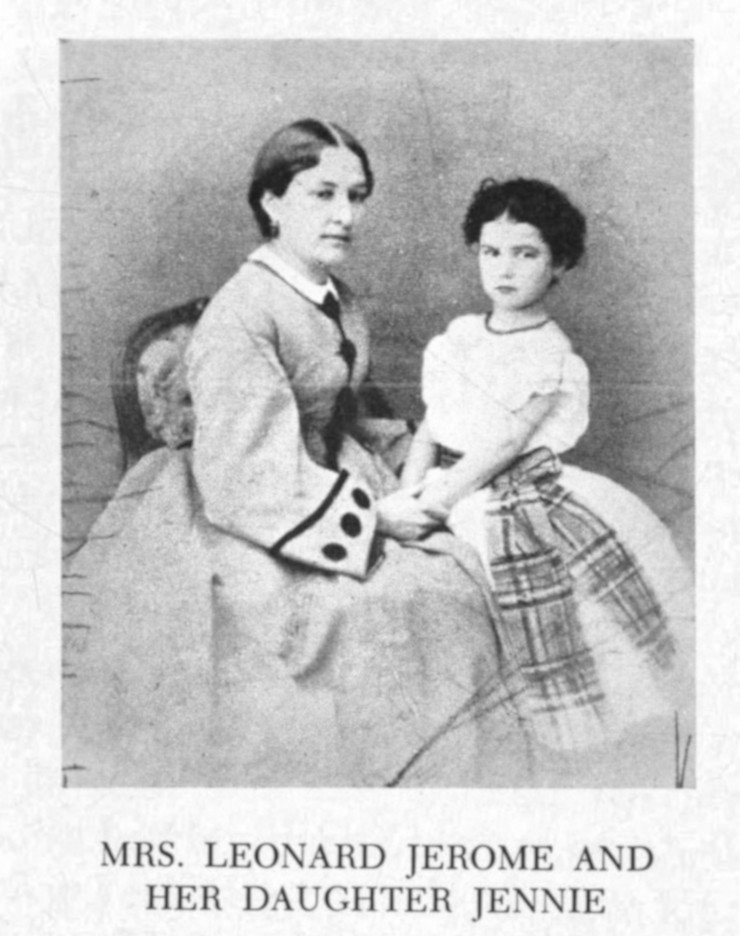 “One day she will be a famous prima donna,” his wife tried to comfort him. Now it was her turn to sigh a little. Clarissa Jerome, née Hall, before her marriage the most beautiful girl in Palmyra, New York, had herself been born for the stage; or so she believed. But such a career had been out of the question for a distinguished up-state belle, a modest heiress. Instead, she and her sister had duly married—on the same day, the fifth of April, 1849—their cousins, two of the innumerable brothers Jerome, Leonard and Lawrence, respectively. Thus the dowry remained in the family; besides, a double wedding was so romantic. The newly-weds started their married lives under the most promising auspices. Leonard Jerome, then an assiduous young lawyer in Rochester, was patently destined for a splendid future, a prospect that his young bride found delightful. But the doors of the great world, it seemed, were prematurely closing, as her husband’s first appointment in the consular service led nowhere but to an unceremonial return to the United States. Clarissa, however, was determined to open these doors very wide indeed to her little girls. “Fanciulla!” she said tenderly, caressing Jennie, the second, the favorite baby. The mother, too, had to muster her few words of broken Italian to be understood by the child.