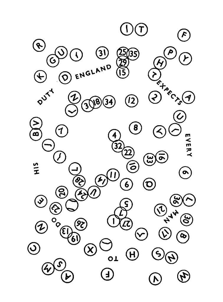 Taking the initials in order read: Silurianonedegreewestnineteen fathoms, or dividing it into its obvious words—“Silurian one degree west nineteen fathoms.”