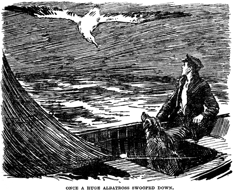 Although the boys did their share in working the ship, the task was an easy one. As for Peter, he spent most of the time curled up on deck, ever with a watchful eye on the companion-way whenever his master was below.