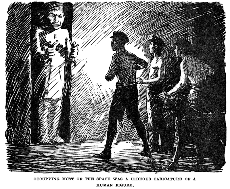 | OCCUPYING MOST OF THE SPACE WAS A HIDEOUS CARICATURE OF A HUMAN FIGURE | 114 |