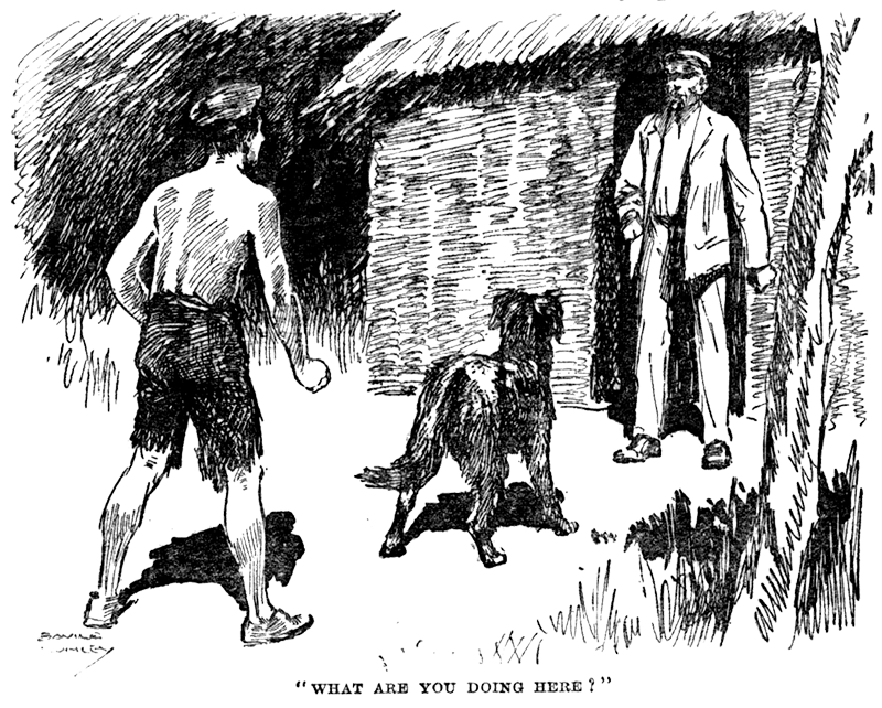 “He’s all right with friends,” replied Alec, fearful for his pet’s safety. Yet he was not going to show the white feather to the intruder. “And I’m fairly quick with an automatic, too. So are my chums down there, if it comes to that. What are you doing here?”