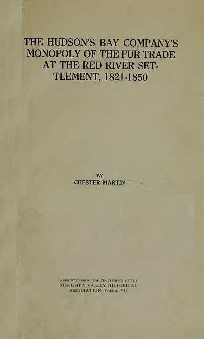 [The end of The Hudson's Bay Company's Monopoly of the Fur Trade at the Red River Settlement, 1821-1850 by Chester Bailey Martin]