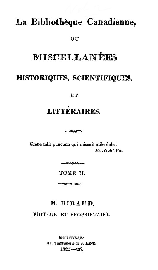 Title: La Bibliothèque Canadienne, Tome II, Numero 5, Avril, 1826.