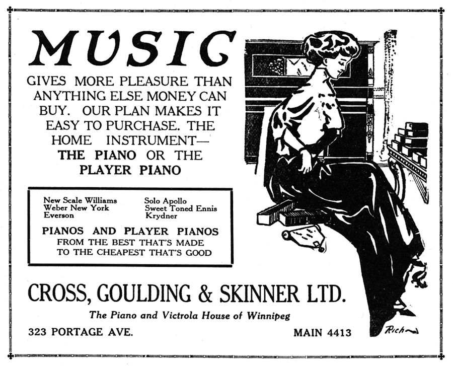 Containing something for every one in the family to read, Complete market reports, All the local news—The livest up-to-the-minute sport page, Advertisements of Winnipeg’s leading merchants, Helpful household hints, Classified pages “money makers in themselves”, Winnipeg’s best society and dramatic page, Clean-cut Accurate—Unprejudiced political news, Fascinating fiction stories.