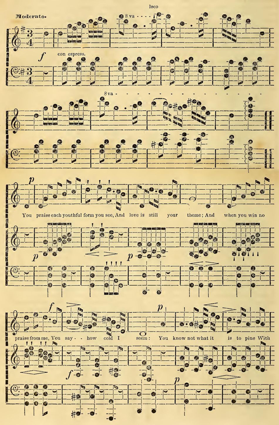 An expression of gratified joy—of joy such as is rarely seen, except in the countenances of those who love—illumined the whole face of the boy as the maiden thus spoke—and taking up his guitar, he sang the words of an olden lay, which has now passed, with many a fair lip that once warbled it, into oblivion.