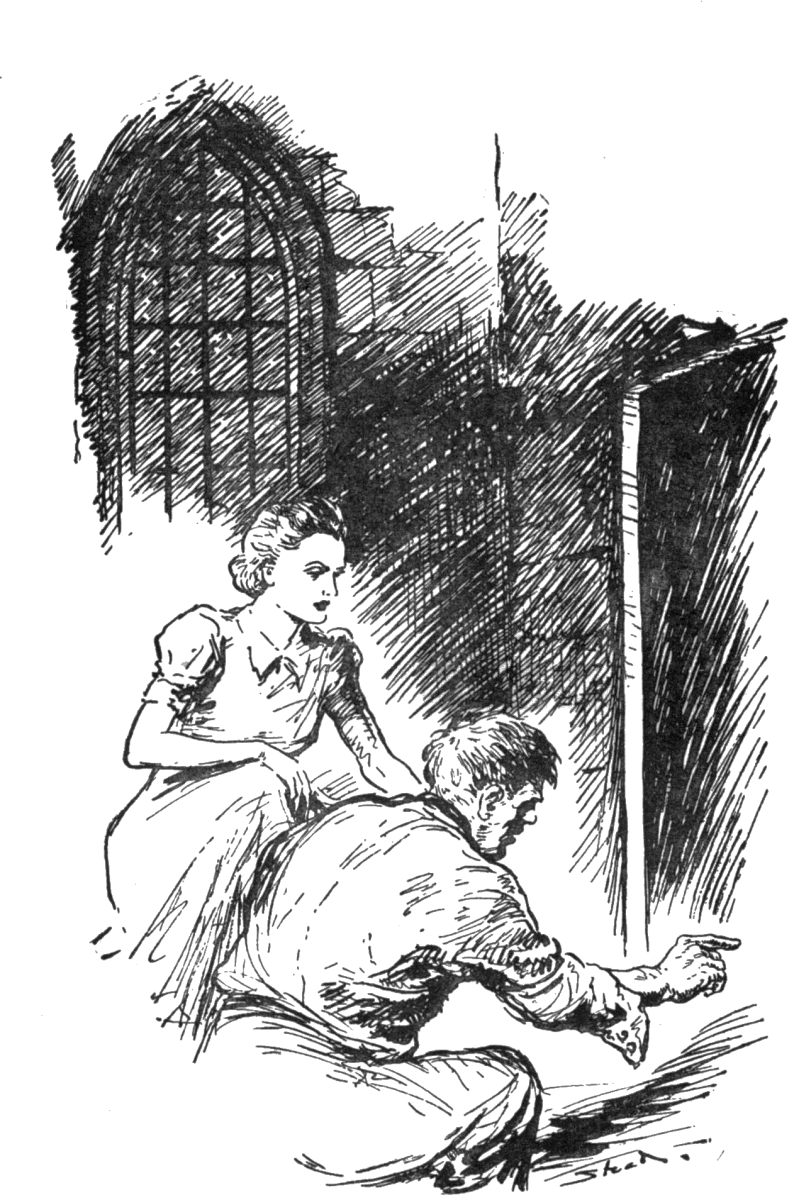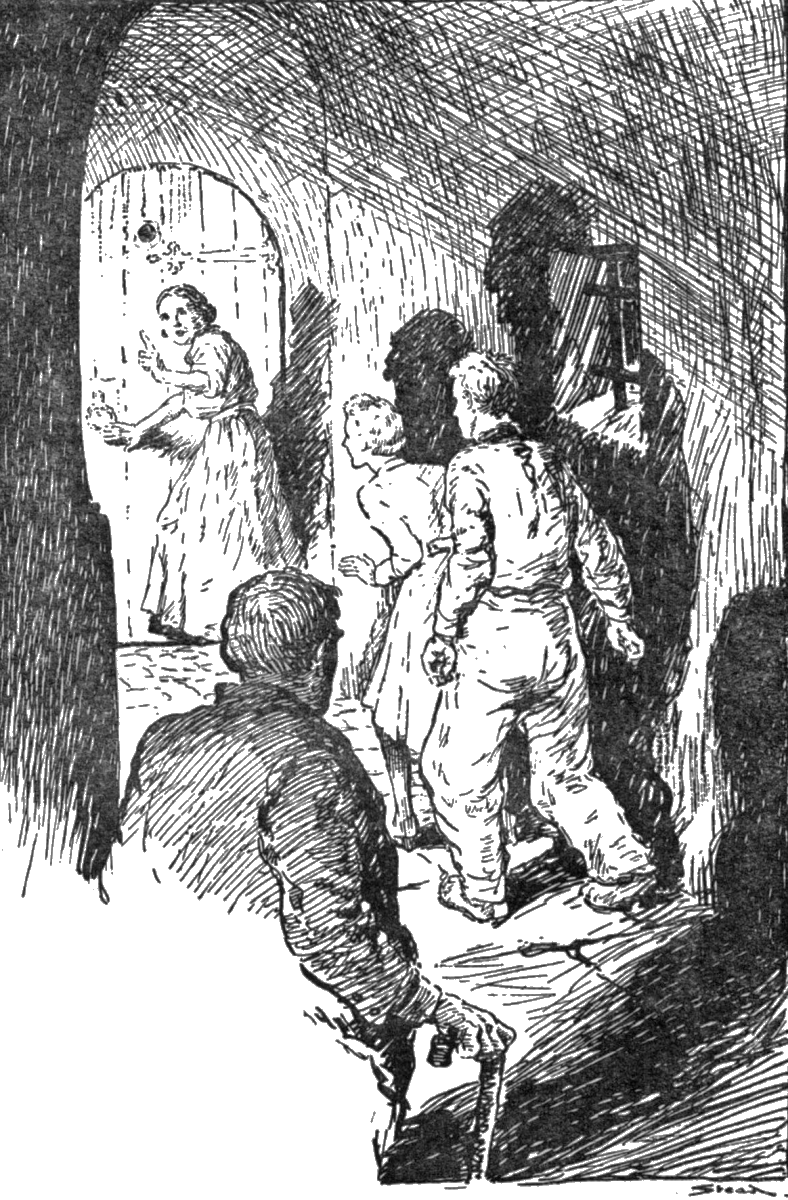 The picture she had glimpsed was of two men, both young. One she could see clearly; in a crouching position, framed as it were in a small square window, he was speaking in a low voice to someone inside the cellar.Frontispiece