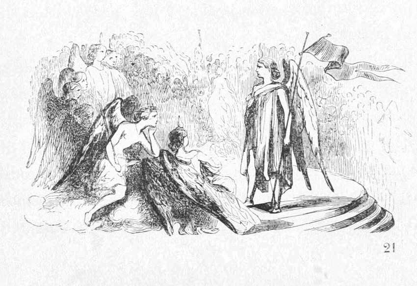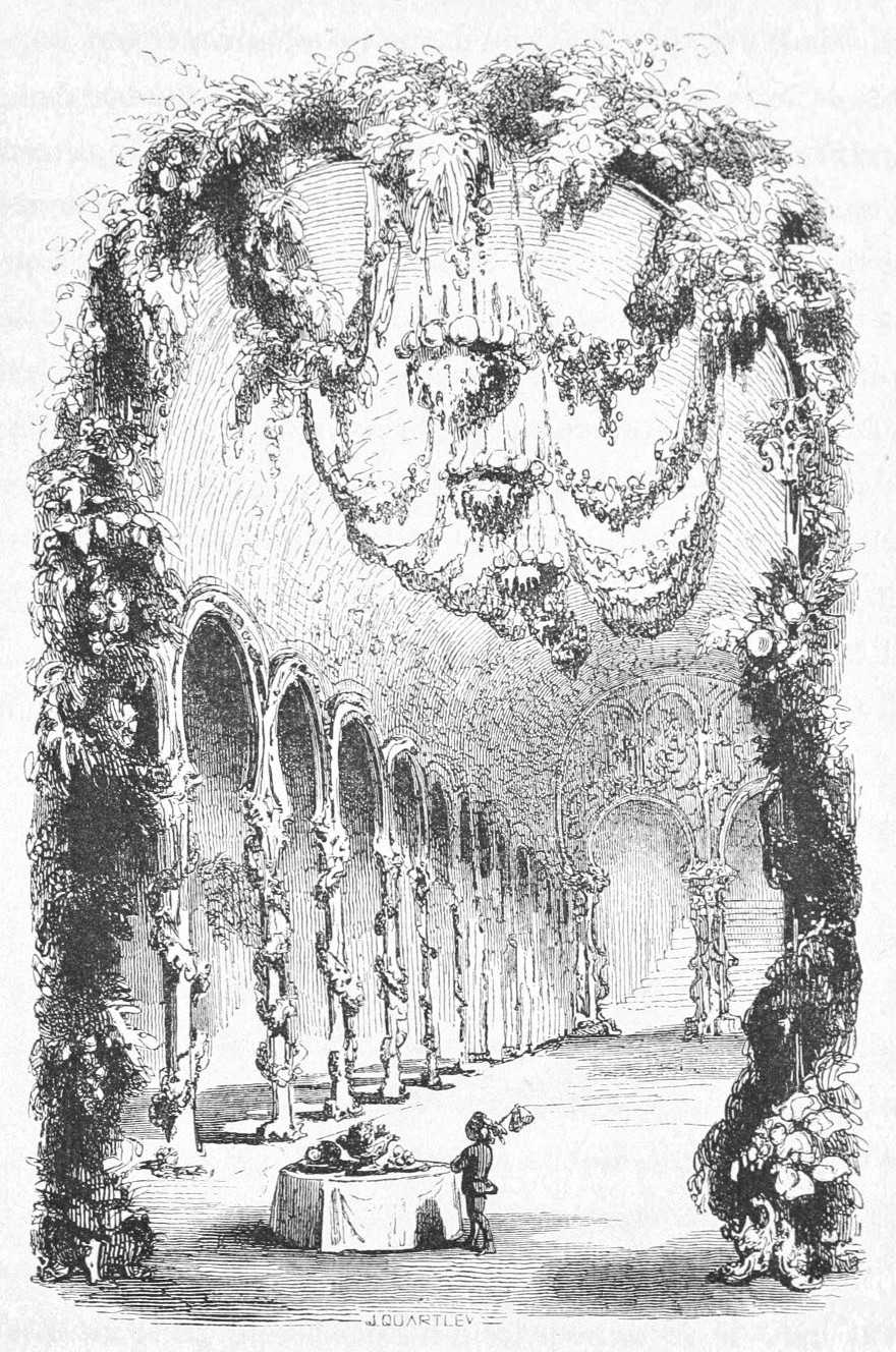 —«Eh bien! enfants, leur dit-il gaiement, vous m’en avez beaucoup voulu, car la science est aussi de l’ennui. Je l’ai entendu dire souvent, et il y a des savants par le monde qui m’ont disposé à le croire. Aujourd’hui plus d’études, plus de science, plus de travaux sérieux! Du plaisir, s’il y en a, des jouets, des spectacles, des fêtes! Saphir, vous m’enseignerez le pas le plus à la mode. Mademoiselle, j’ai l’honneur de vous retenir pour la première contredanse. Je me suis réservé de vous apprendre que vous étiez plus riches que jamais. Ce maudit lac s’est retiré, et le séjour de ces conquérants importuns décuple la fertilité des terres. On a déblayé les ruines du palais, et on a trouvé dans les fondations un trésor qui a dix fois plus de valeur!...»