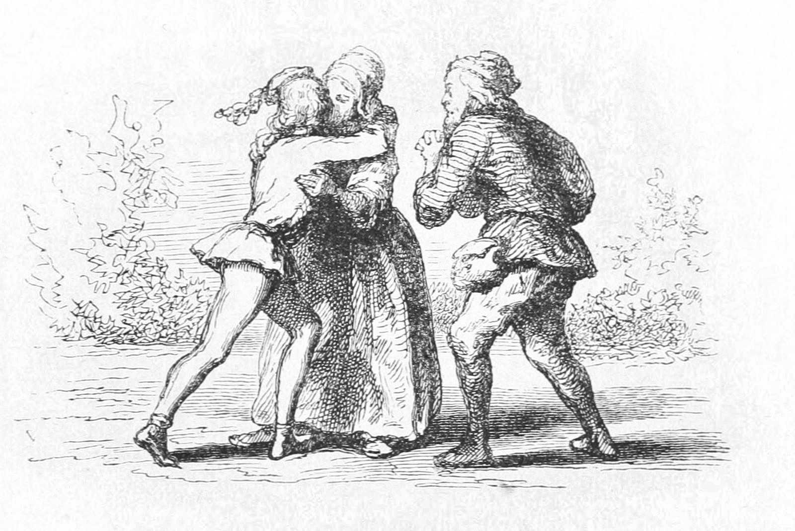 —Que dites-vous de marauder, joli Trésor! Ah! vos haies étoient trop bien frondues, vos fossés trop profonds, et vos échaliers trop serrés pour cela! Tout ce qu’on pouvoit faire étoit de tondre le bout de quelques feuilles qui for-issoient entre les joints de la claie, et c’est au grand bénéfice des pieds que nous émondons, comme dit le commun proverbe.