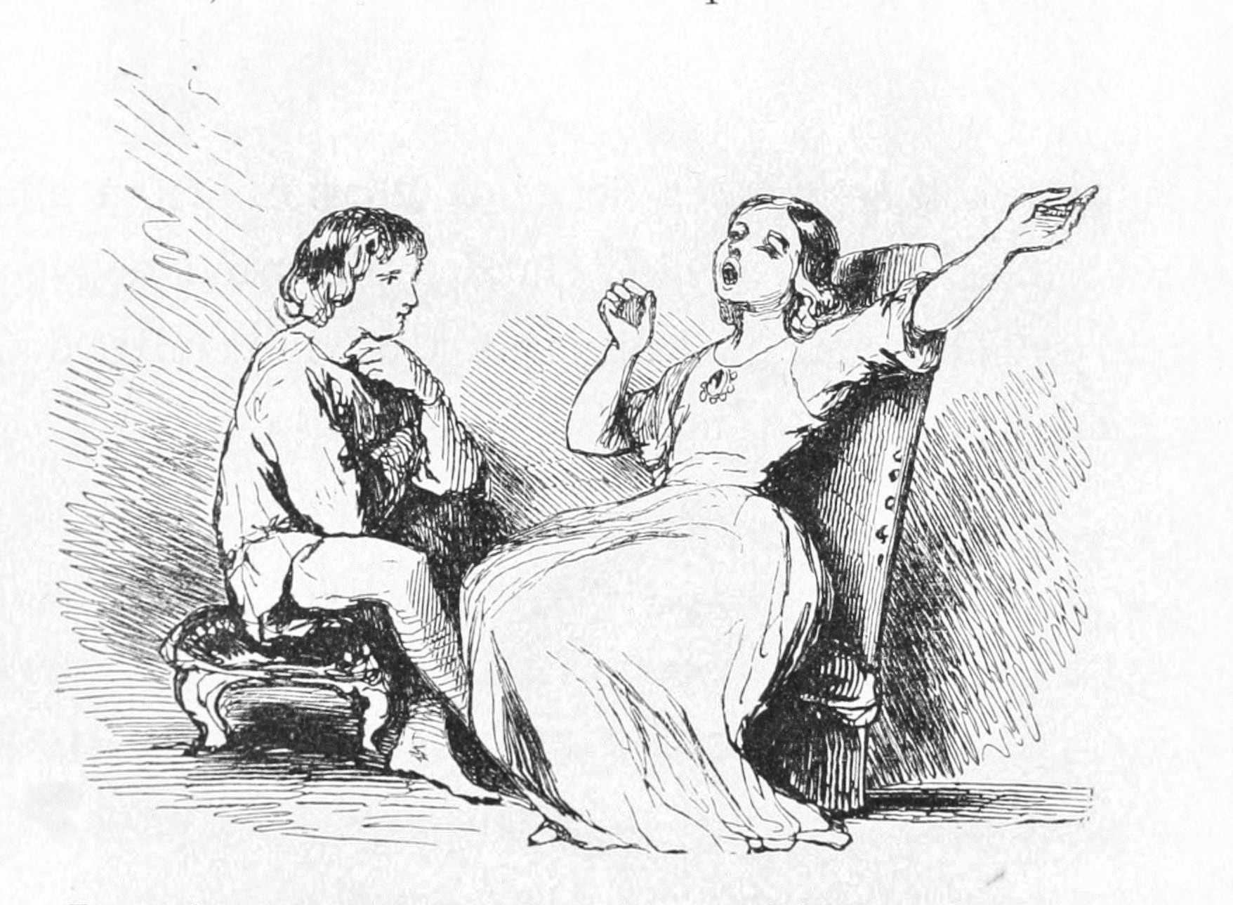 Et en parlant ainsi, les jeunes gens arrivèrent auprès de Tropbonne, qui étoit alors trop heureuse. Saphir s’avança le premier comme le plus déterminé, pour prier sa grand’mère de leur permettre le travail, au moins pour deux ou trois années encore. Le génie, qui essayoit les entrechats et les ronds de jambe, en attendant sa première leçon de danse, partit d’en éclat de rire presque inextinguible, auquel succédèrent pourtant quelques douces larmes.