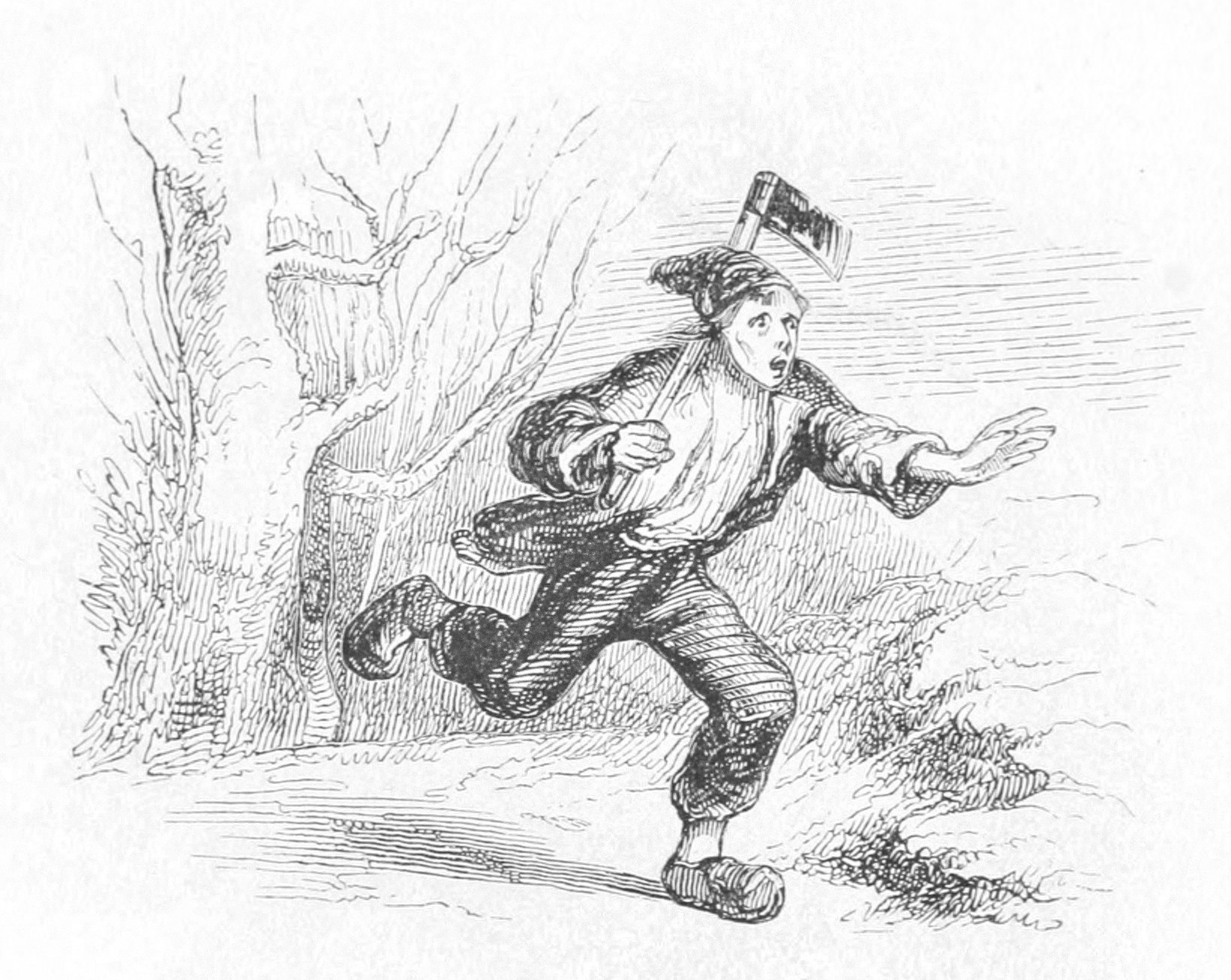 Après avoir couru longtemps, longtemps, il lui sembla reconnoître la voix de la Bichonne. Il marcha droit dans le fourré, à l’endroit où il l’avoit entendue, et il y entra, sa bonne hache levée.