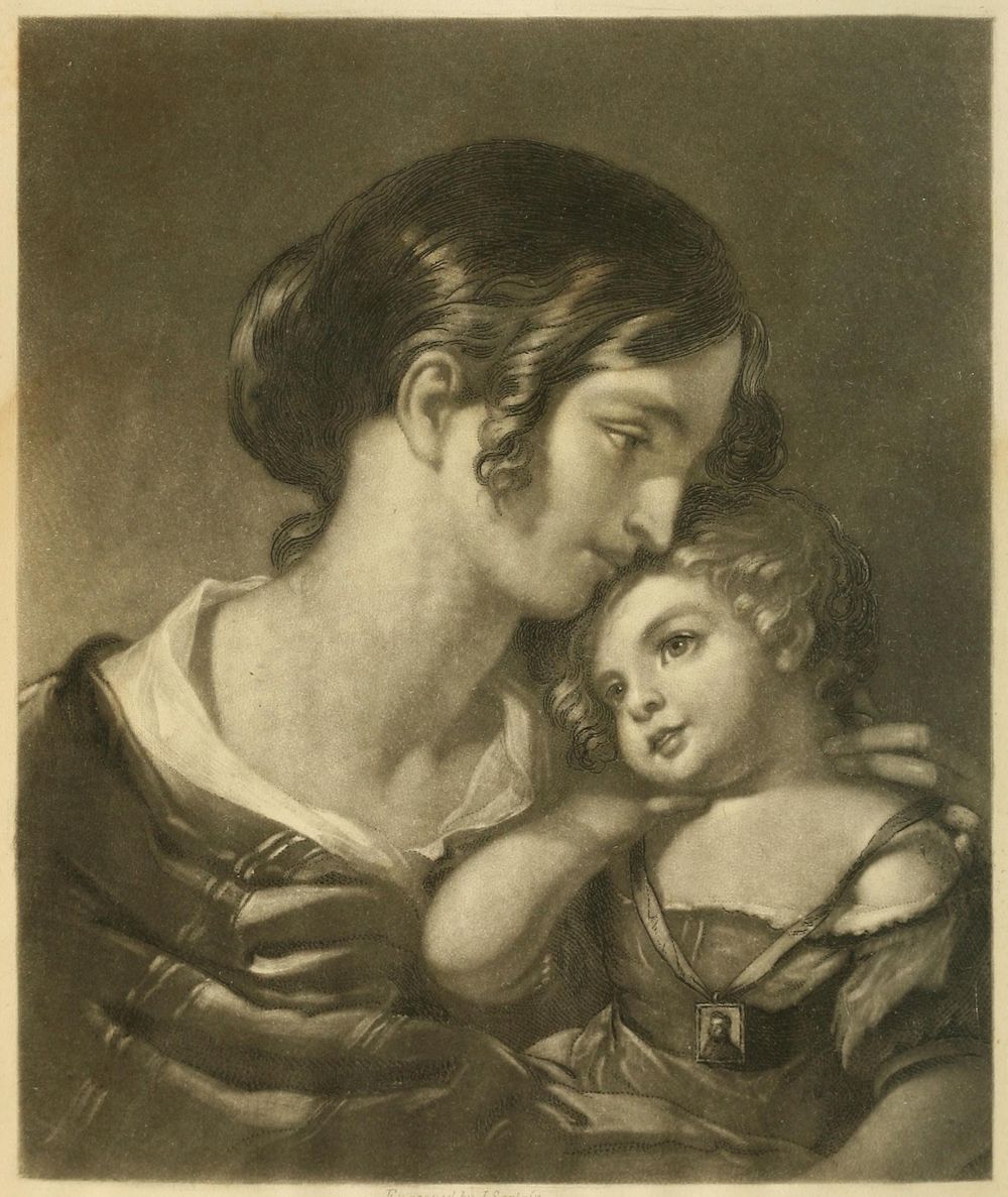Reclining its head on a fond mother’s breast,