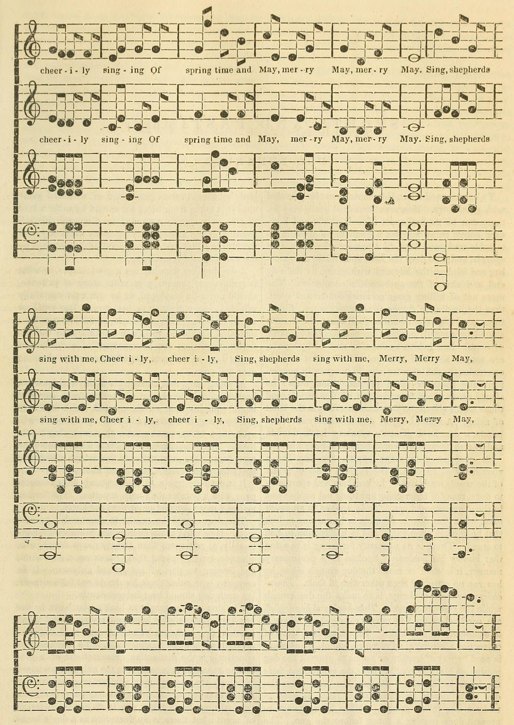 sing with me, Cheerily, cheerily, Sing, shepherds sing with me, Merry, Merry May